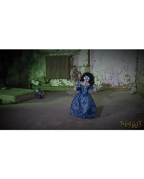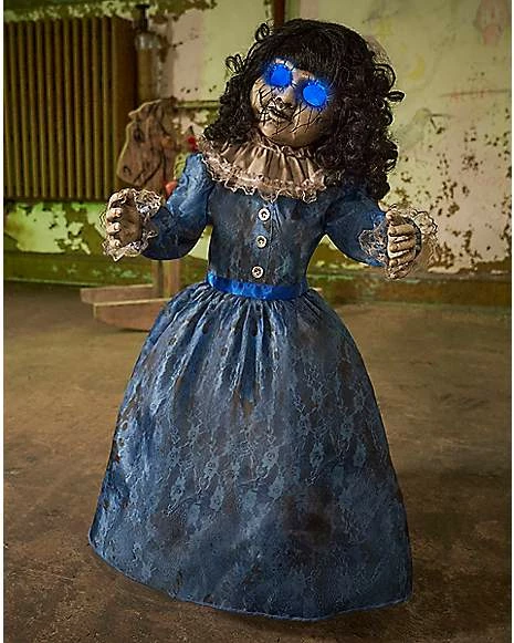 Watch in fear this Halloween as the Roaming Antique Doll freely makes her way around your home with her specially designed floating technology. Look in fear as she lights up the room with her blue LED eyes and taunts you with her chilling set of phrases! All she wanted was some attention!