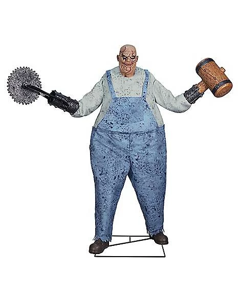 This Buzzsaw animatronic features a large mallet on one hand and a terrifying buzzsaw that spins on the other! His LED light-up eyes and left and right turning torso will have all your guests running in fear this Halloween!