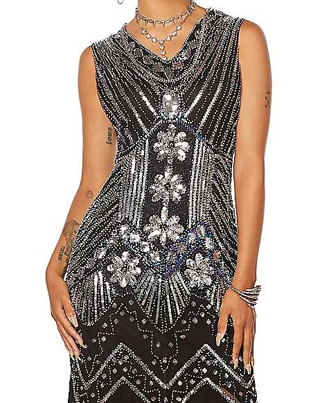 Let’s have a ball, toots! Dance like it’s the prohibition era inΒ our beautiful black adult beaded flapper dress. Dance to some jazz this Halloween and celebrate like it’s the ’20s! This beaded dress features fringe detail that will have you coined as best dressed!