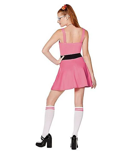Townsville is counting on you, Blossom! Join the Powerpuff Girls in their action-packed adventures when you take on the role of Blossom! This Blossom costume includes a pink dress with an attached black belt. Blossom’s signature hair accessory, a necklace, bold sunglasses, and a pair of white knee-high tights with pink stripes make this costume feel completely authentic!