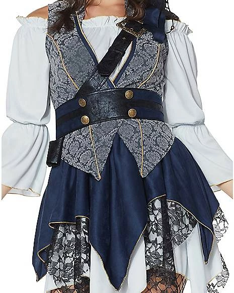 From Our Exclusive Signature Collection. Way out in the uncharted waters of the worldβs high seas comes the Castaway Beauty Pirate Costume. Before you know it, youβll be a plundering, treasure hunting, dangerous pirate with looks to spare. This costume comes in extraordinary detail from the hat and headband, all the way down to your weapon. All of this detail will have you looking like you just dug up buried treasure wherever you go. Plunder the high seas in this costume from our signature collection.