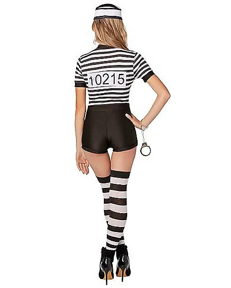 You’ll be guilty of looking fabulous in this Adult Guilty Inmate Costume! This prisoner costume includes a black and white striped romper with a front zipper closure, a striped hat, and fake handcuffs. Here comes trouble!