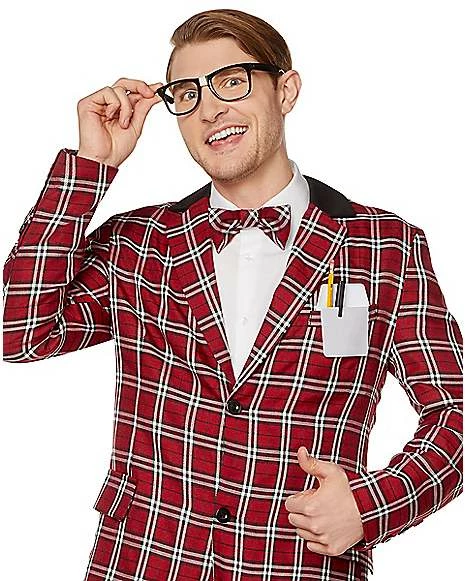 If our calculations are correct, youβll be the best-looking nerd in town on Halloween night! The included plaid jacket, pocket protector, bow tie, and glasses will have you looking like you just stepped out of the library after a long night of studying!