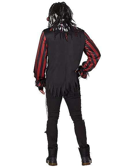 Who doesnβt love clowns? This Adult Scary Clown Costume Kit is bound to stir up more screams than laughter! This costume kit has all the classic features of a creepy clown: a striped, ruffle-neck shirt with fake bloodstains and a ragged hem, a pale white mask with full clown makeup, and stringy black hair. Have fun clowninβ around!