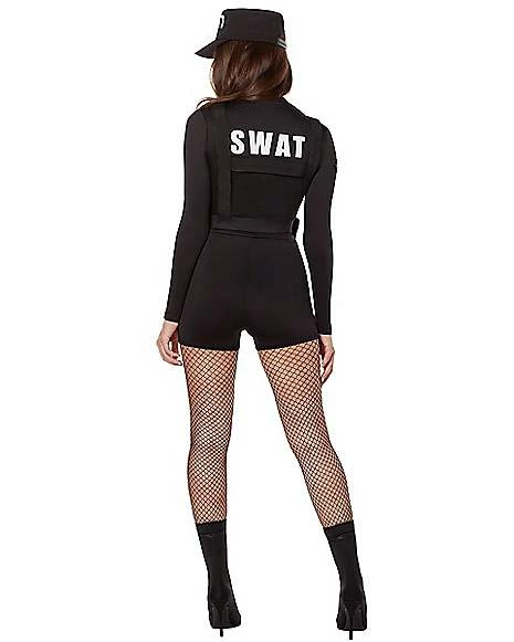 Take control of the scene in this sultry Adult Swat Commander Costume! Everyone will know you mean business when you enter the room in this black romper, SWAT hat, and badge. When you demand to know where the candy is in this costume, you’re guaranteed to get a speedy confession.