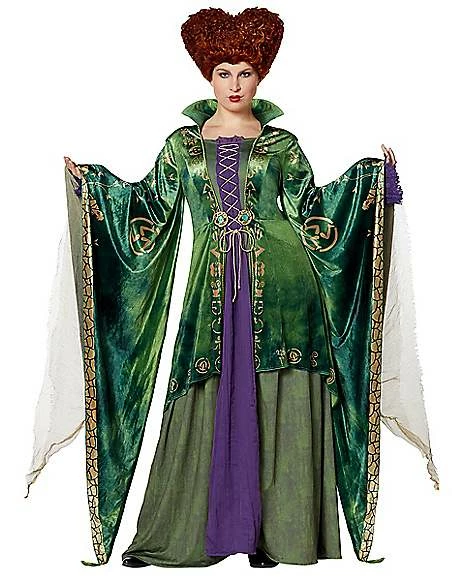 From our exclusive signature collection. The vexing villainess from Disneyβs Hocus Pocus returns in this officially licensed costume, available exclusively at Spirit Halloween. The eldest of the three infamous Sanderson Sisters, Winifred leads the trio and uses her magical powers for villainyβ¦ How will you use yours? Conjure up some fun this Halloween with this deluxe costume, featuring Winifredβs signature green and purple ensemble!