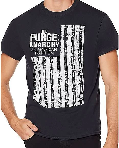 Embrace an American tradition in this black t shirt! This intimidating graphic tee is ideal for fans of The Purge: Anarchy.