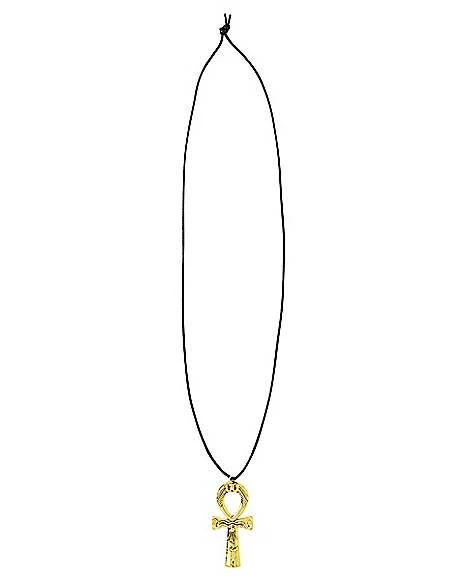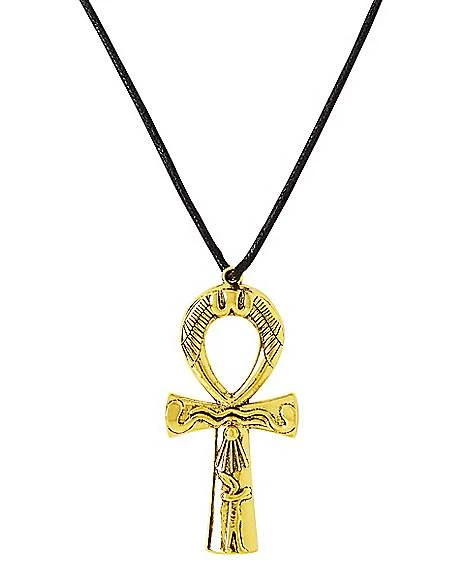 This goldtone ankh necklace offers a shiny finishing touch to your look.