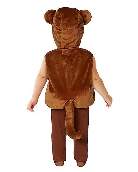 Your little one will go bananas for this adorable costume! This cozy jumpsuit features brown and white plush detailing, padded feet, and a fuzzy, hooded, monkey-eared top. With convenient snap closure, your baby will be ready to monkey around all night in no time!