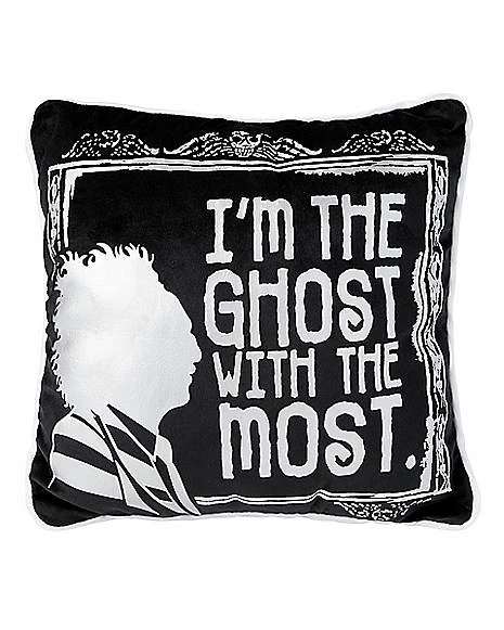 Make every room of your home honor your favorite movie with these official Beetlejuice pillows! These soft black and purple pillows have Beetlejuice quotes in silver saying “I myself, am strange and unusual” and “I’m the ghost with the most” along with Beetlejuice character silhouettes. They’re a must-have for any fan!