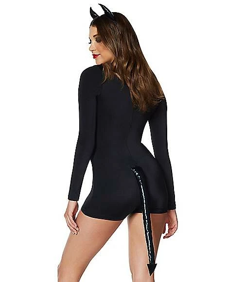 Have some devilish fun on Halloween with this black devil kit, available exclusively at Spirit Halloween! Featuring a black devil horns and a matching pointed tail, this kit is perfect for anyone looking to have some mischievous fun on Halloween night.