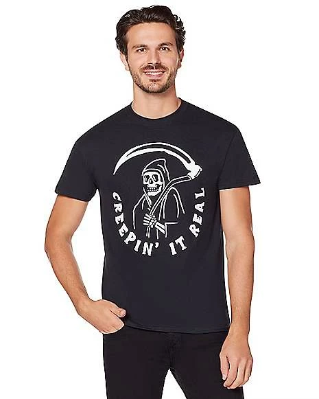 Who needs a costume when you can just creep it real? This black and white tee is the perfect addition to your Halloween swag.