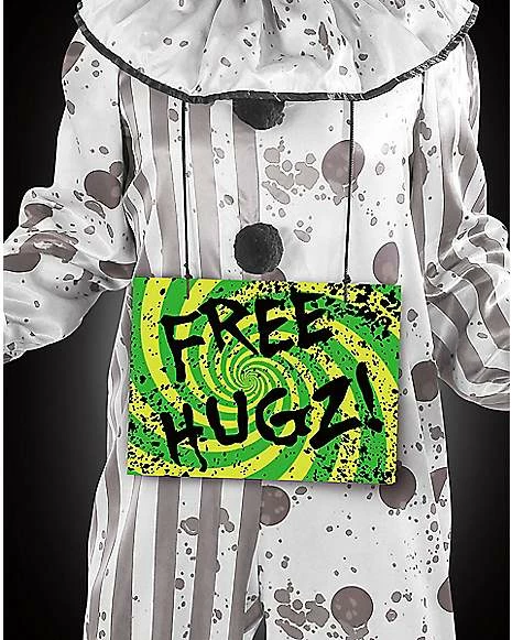 Customize the look of your animatronics and decor this Halloween by hanging up this green spiral Free Hugz Sign somewhere around your home. This sign is perfect to go alongside any creepy clowns or undead zombie animatronics and will have everyone coming closer for a better look. Don’t get to too close to whoever’s holding this sign or they might get you in their grasp!