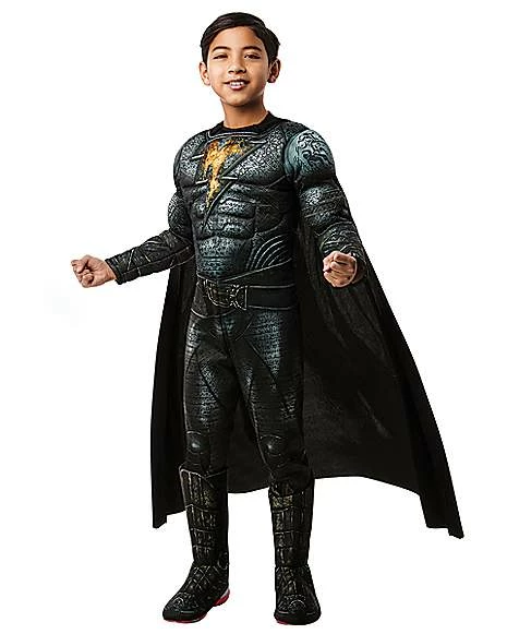 Take flight and start your super adventure on Halloween night with this Black Adam Costume! This officially licensed costume includes a padded jumpsuit with attached boot tops as well as a matching cape. With intricate detailing from head to toe, this costume will make you look just like the real deal.