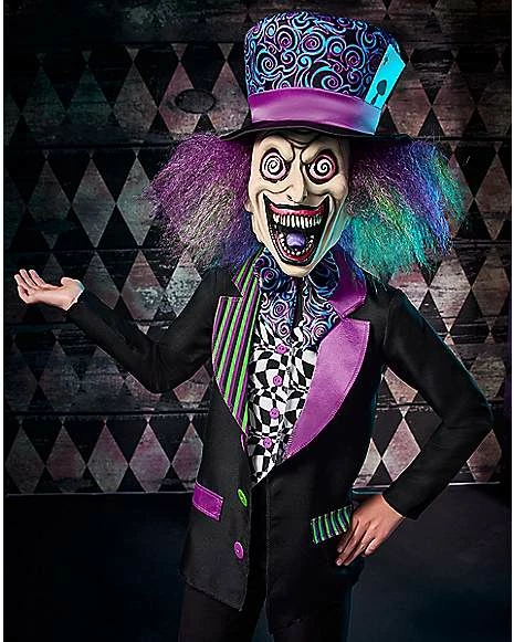 You’ll be entirely bonkers in this Dark Mad Hatter costume. A crisp black suit jacket with an attached vest and neon accents looks put-together and positively mad! An oversized bow tie and hat feature vibrant, surreal colors. A petrifying mask with swirling eyes and a gaping grin completes the look.
