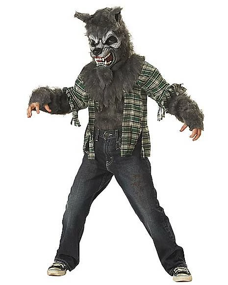 Beware of the full moon when you wear this Howling at the Moon child costume. The 100% polyester, green plaid shirt of this werewolf costume features faux fur and comes complete with a ferocious wolf mask with open mouth and bared teeth.