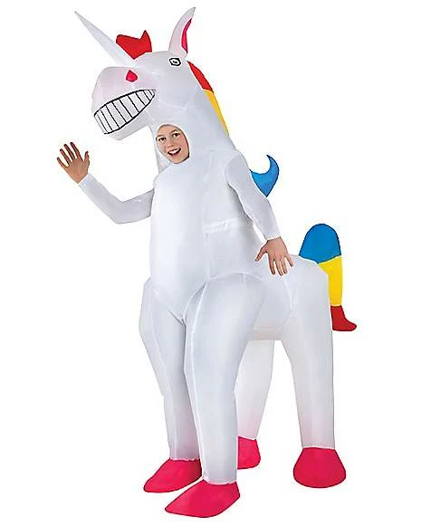 Have you ever dreamt of having a unicorn? How about being a unicorn? With this Inflatable Unicorn Costume, that fantasy can be a reality. With a multicolored mane and pink hooves, this costume will absolutely make you the talk of any fantastical festivity. Put on this costume and youβll be ready to gallop your way to an enchanting Halloween in no time. Just watch out for your horn!
