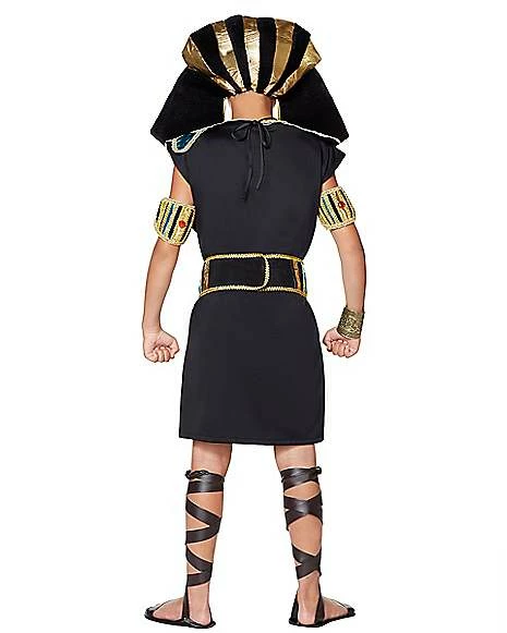Become the ruler of Egypt this Halloween! This King Tut costume will have everyone saying “WOW!” The sleeveless black tunic is the perfect base for your King costume! The included collar, belt and arm bands feature an embroidered foil detail that will have you looking like instant royalty! Add the padded headpiece with 3D snake detail to show your authority this holiday!