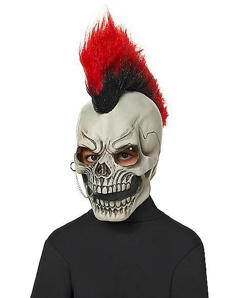 Show just how big of a rebel you are this Halloween when you wear this Kids Punk Skeleton Mask! This edgy and scary mask features a red and black mohawk and a nose chain along with a spooky skeleton face. It’s the perfect mask to make sure everyone knows just how tough you are.