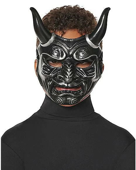 Become a powerful samurai with this kids half mask! This samurai mask features an all-black face with silver accents and an intimidating expression. An elastic band keeps this pliable mask comfortably in place.