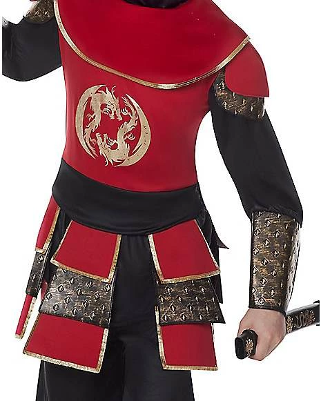 You’ll look like the ultimate warrior this Halloween when you dress up in this Kids Samurai Ninja Costume! This costume includes a fierce red shirt that features an image of a dragon, a hood with an attached face mask, pants, and a sword that lights-up, turning you into the most skilled samurai in town.