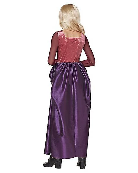Sing a spellbinding song this Halloween as the fair and famous Sarah Sanderson! Join Winifred and Mary as you dance around in Sarah’s signature dress, which features pink fabric at the top, while the skirt flows out into lovely red and purple layers. The lace-up chest and bold red sleeves help complete the look in spellbinding fashion. Any Hocus Pocus fan will be dying to have this Spirit exclusive costume!