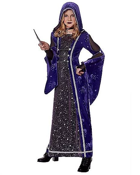 Your little one will become a master of magic and witchcraft when they put on this Star Sorceress Costume! This beautiful costume includes a hooded velvet dress, a choker that shines bright, and a wand so they can cast spells all Halloween long.