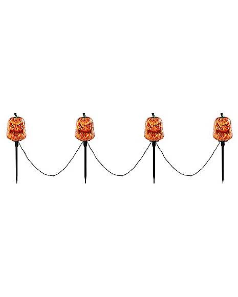 Create the perfect Halloween scene with these Light-Up LED Jack-O-Lantern Pathway Markers! This spooky set includes four pathway markers that will light up any walkway, porch, or driveway with an eerie glow.