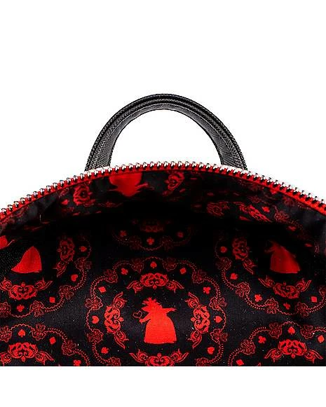 “Off with their heads!” Go down the rabbit hole and start your adventure with your favorite Disney villain, the Queen of Hearts, with this Loungefly Queen of Hearts Mini Backpack! For a look that most certainly rules, this officially licensed backpack is a great choice.