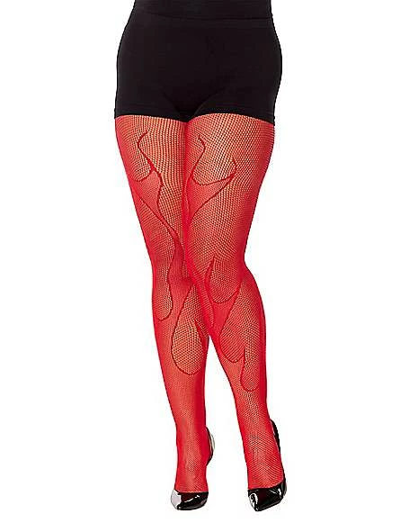 You’ll look fire this Halloween when tossing on these red and racy fishnet stockings! Flame details that run up your legs will add a devilish flair to your fiery Halloween look.