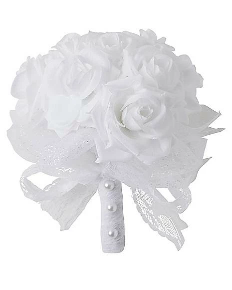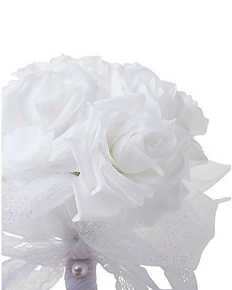 Here comes the bride (or the flower girl, or the ghostly widow…)! This beautiful Rose Bouquet features faux roses, lace, and pearl accents. Complete your Halloween look with this fabulous floral accessory!