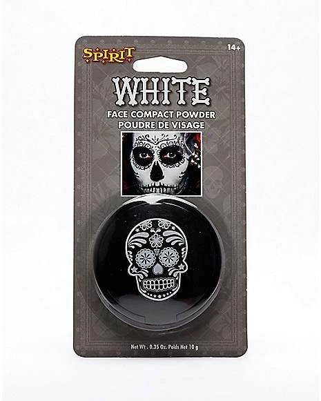 Give your skeleton style an undead upgrade with this white face powder! This compact powder is perfect for giving your face that ghostly white skull coloring! It’s perfect for retouching your look and keeping you cool and creepy all night long!