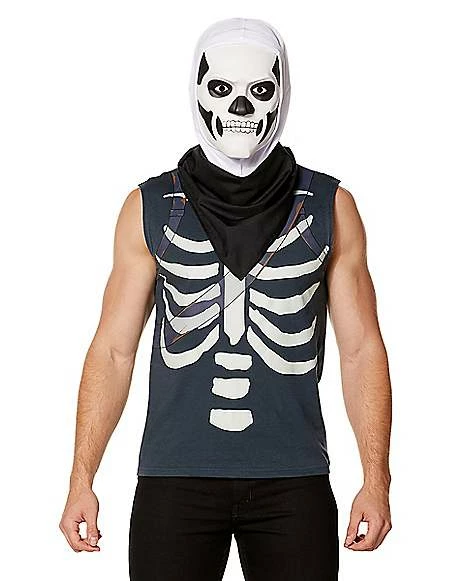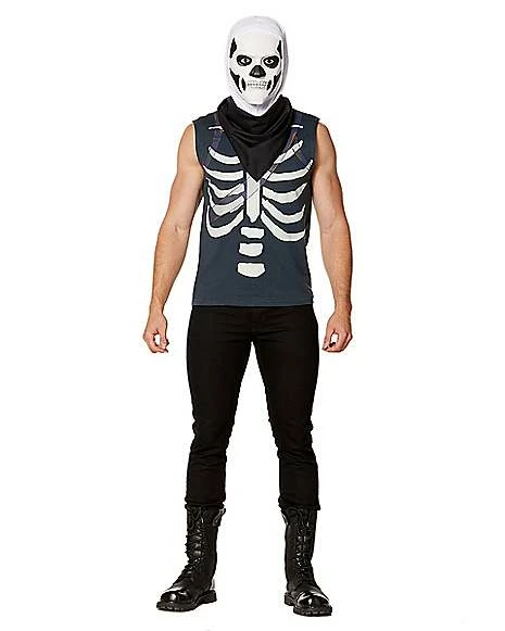 Bring one of the most sought-after outfits to life this Halloween. With this official Skull Trooper costume kit, you can easily transform into the Skull Trooper himself with the included hooded skull mask, costume t-shirt, and black bandana. Rally the squad and prepare for battle when you dress up as Fortniteβs Skull Trooper!
