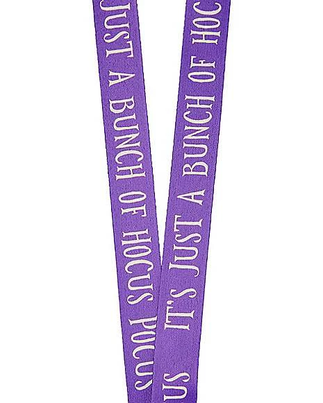 Carry your keys and ID easily in this official Special Potion Hocus Pocus lanyard! Show off your favorite movie with this fun lanyard that has a small potion charm and reads “Sanderson Sisters, est. 1693, Special Potion, just add two drops oil of boil and a dead man’s toe.” It’s perfect for any Hocus Pocus fan! The double-sided strap reads “It’s just a bunch of Hocus Pocus” in white on purple on one side and features skulls on the other side.