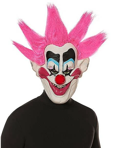 Embrace a chilling and thrilling look in this officially licensed Killer Klowns from Outer Space Spikey mask! This spooky Spikey mask features neon pink hair, chalk white skin, and a bright red nose. A wide elastic band keeps this mask securely in place while you clown around.