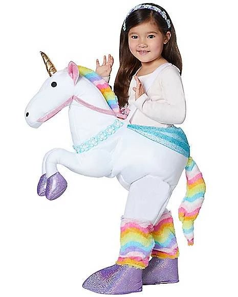 Unicorns are real! They’re magical and beautiful, just like your little one! Let your toddler’s dreams come true when you dress them in this unicorn piggyback costume this Halloween! This white unicorn features a rainbow mane, along with a rainbow tail, headband, and glitter hooves! The goldtone horn tops off this glamorous look!